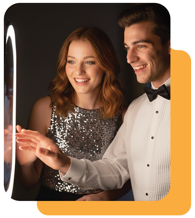 We use DSLR cameras, studio lighting, and top-tier software to deliver studio-quality images guests can share instantly